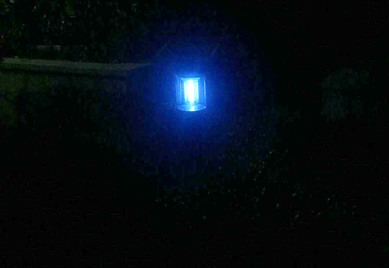 上圖(tú):青島小區太陽(yáng)能滅蚊燈晚上亮燈(dēng)工作(zuò)效果