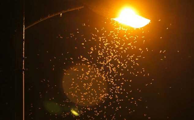 2、滅蚊燈周圍不能有強光源照射,否則(zé)會影響誘蚊(wén)效果。可以看一下(xià)下麵這張(zhāng)圖,即便是普通的路燈,也能(néng)夠吸引很多蚊蟲過來。如(rú)此(cǐ)一來,室外滅蚊(wén)燈能夠吸引到的蚊蟲就被“分流”了。