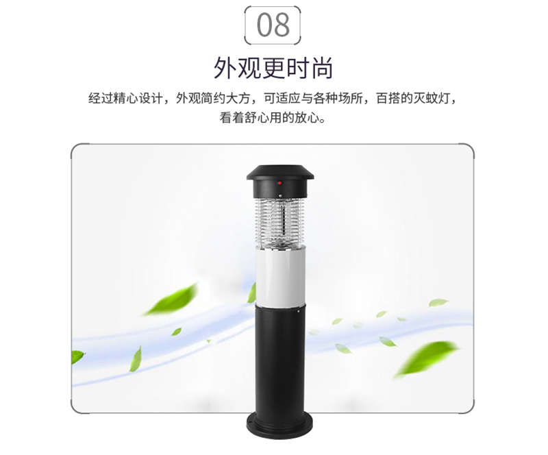 2、功能強大,照明和滅蚊可以同時使用,適合用作景觀燈、照明燈、草坪滅蚊燈。
